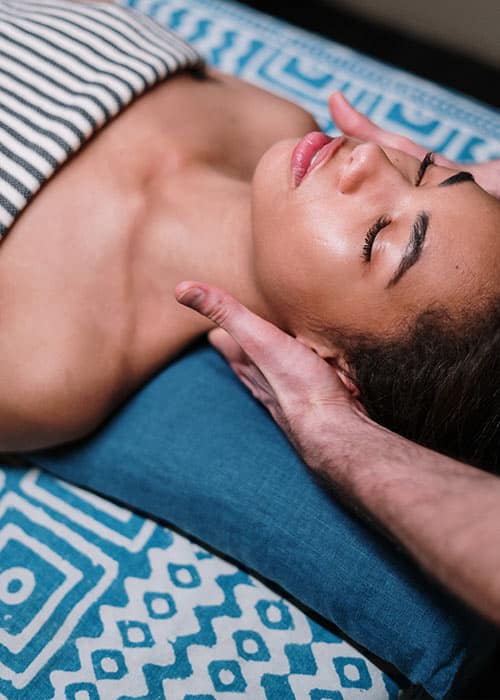 This centuries old treatment from India starts on the upper shoulders, and progresses up the neck and scalp.
